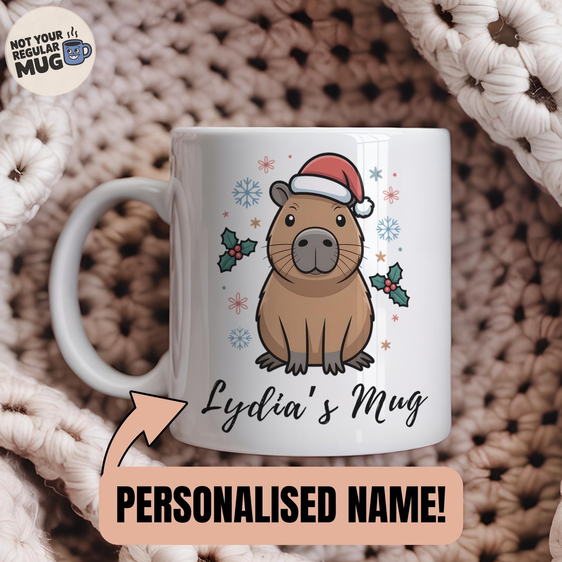 • Custom Christmas capybara mug with personalised name