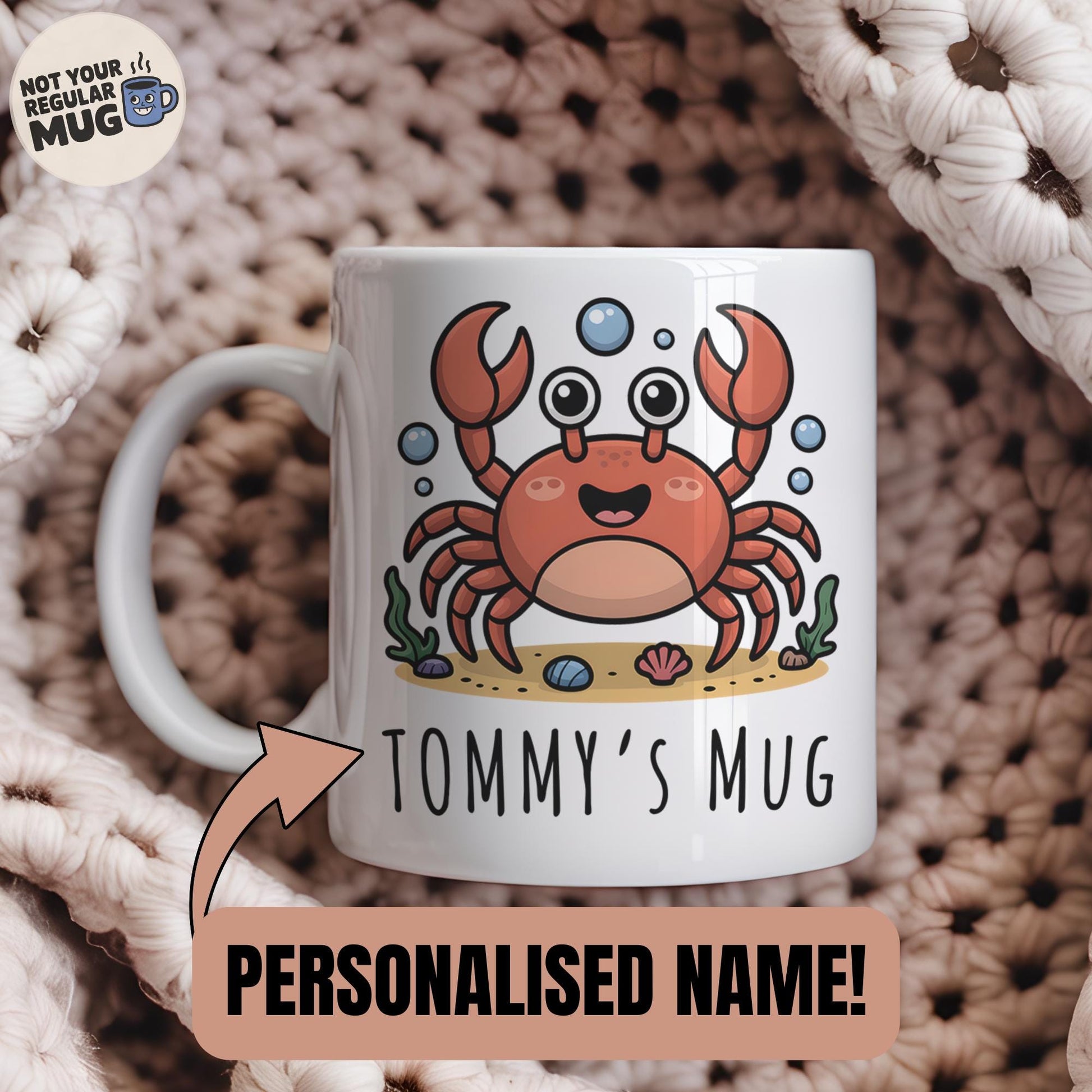 • Custom crab mug with personalised name