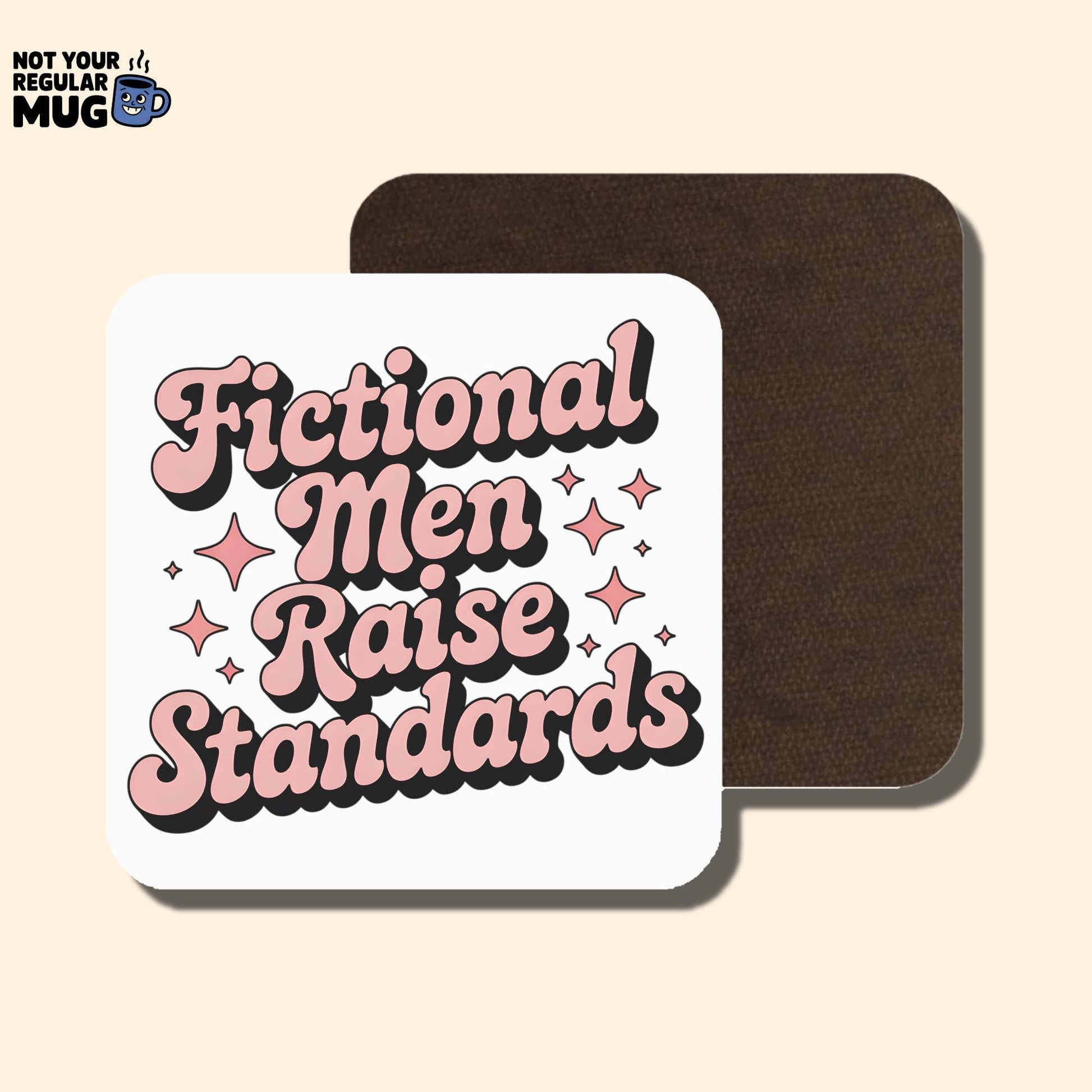 If fictional men have ruined your expectations, this mug gets it. The “Fictional Men Raise Standards” mug is made for readers who know book boyfriends always set the bar way too high.