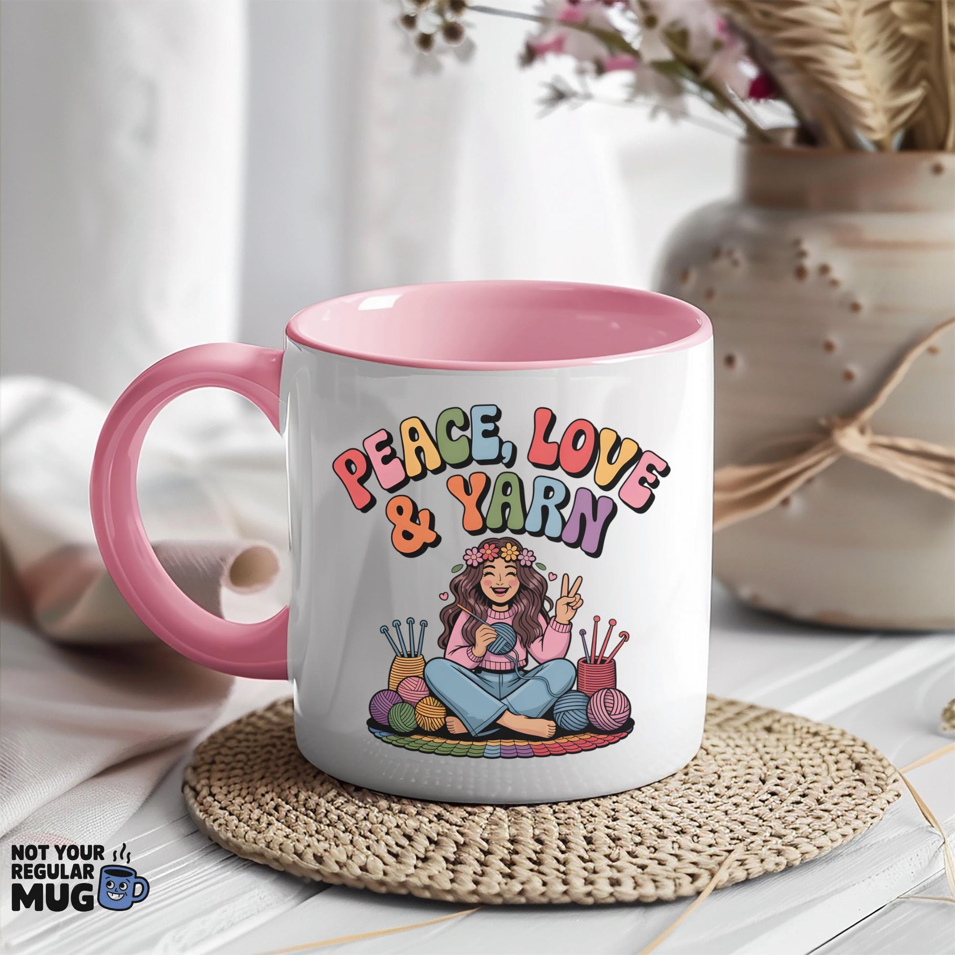 For crocheters who live for calm vibes, creativity, and a ball of yarn. This funny “Peace Love and Yarn” mug is perfect for yarn lovers who spread handmade joy one stitch at a time.