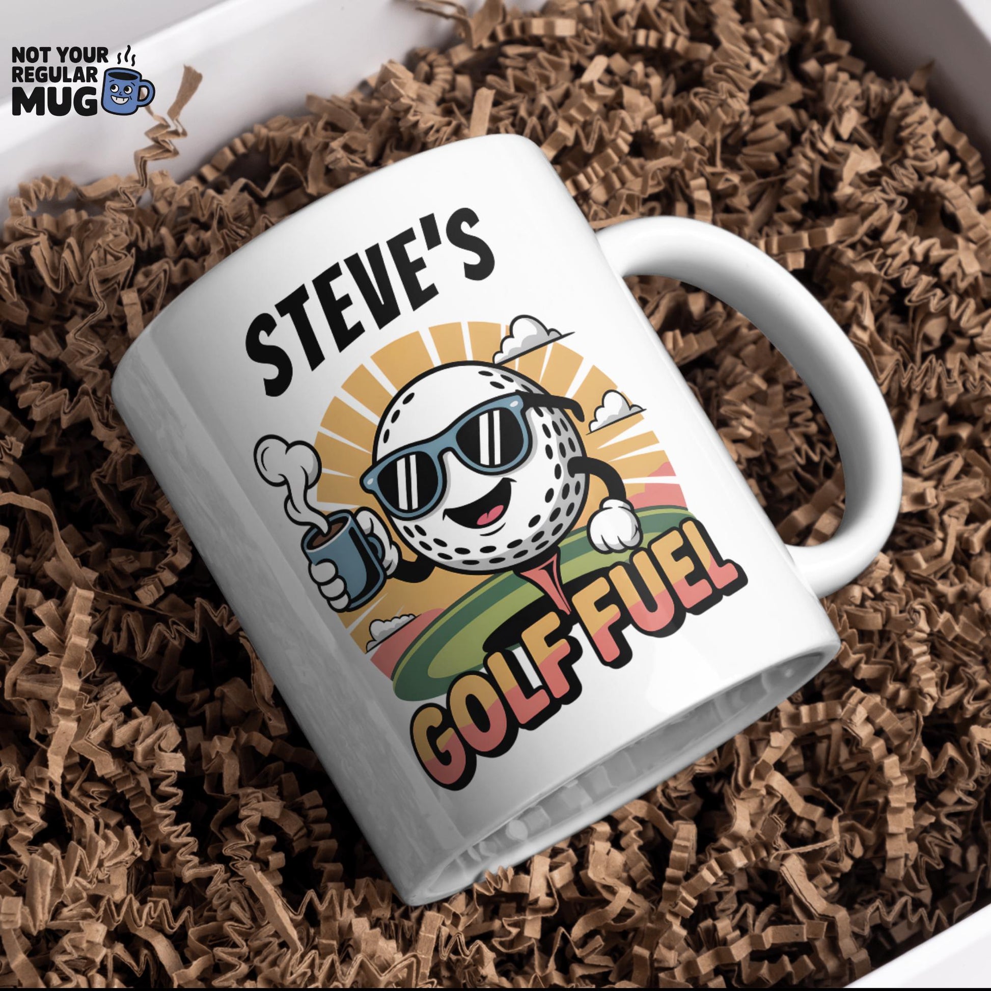This custom “Golf Fuel” mug features a bold cartoon golf ball character and personalised name, making it the perfect funny golf gift for dads, grandads, brothers, or golf buddies. Ideal for birthdays, Father’s Day, retirement, or Christmas, this mug is guaranteed to be their go-to cup before heading to the course.