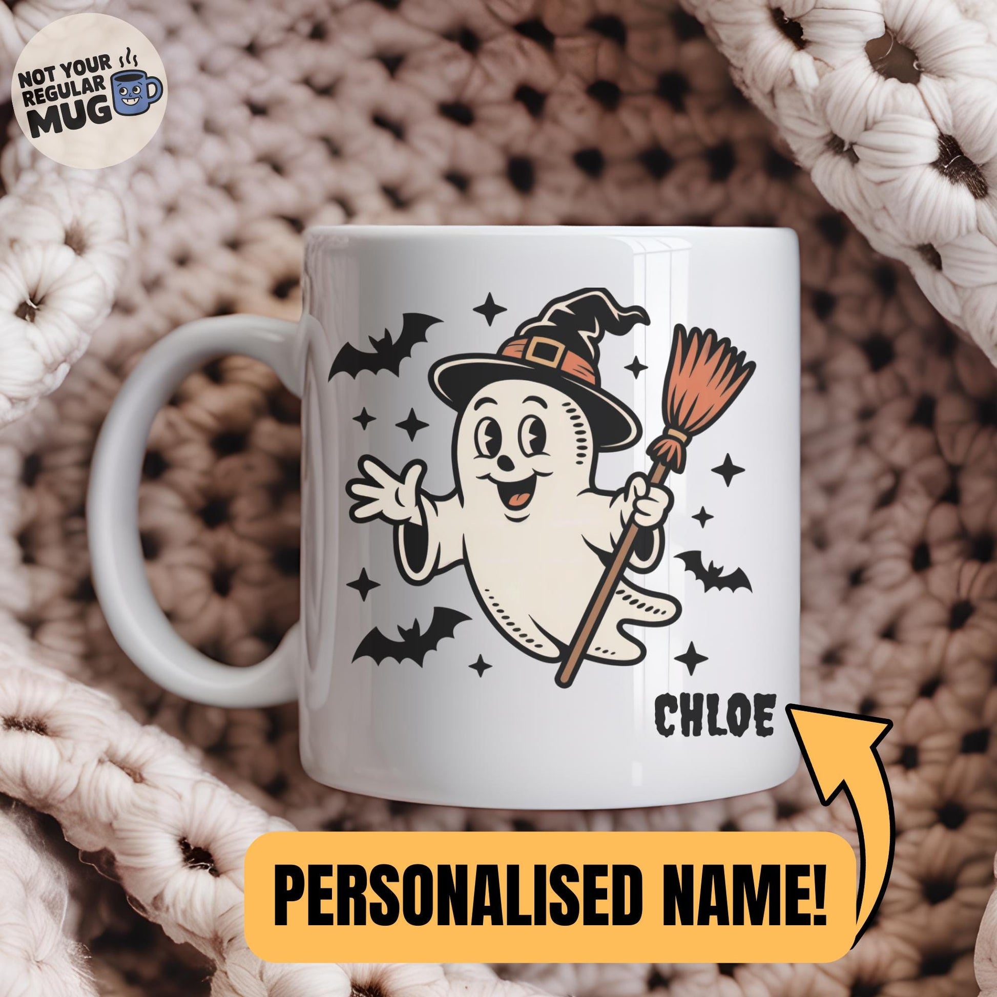 Perfect for cosy autumn mornings, Halloween parties, or spooky fall decor, this retro ghost mug blends cute and classic Halloween vibes. A thoughtful personalised gift for ghost lovers, vintage Halloween fans, and anyone who loves seasonal mugs with character.