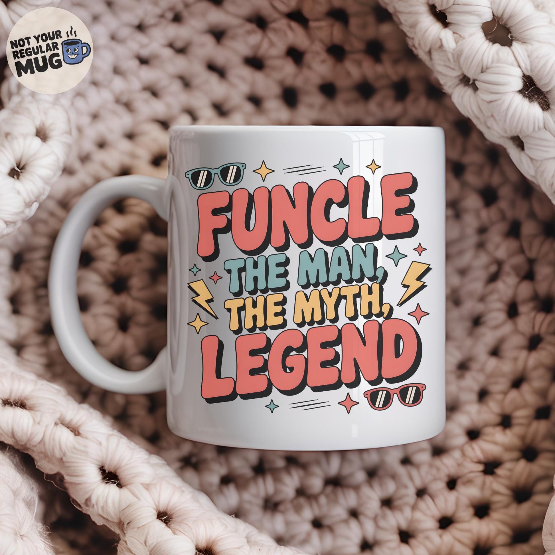 Celebrate the legendary uncle in your life with this fun “Funcle: The Man, The Myth, The Legend” mug. Featuring bold retro-style lettering and playful accents, it’s the perfect gift for uncles who love a laugh and don’t take life too seriously.